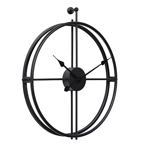 Flexibel väggklocka stor vintage retro XXL 80 cm diameter metall industriell svart vit guld (svart)