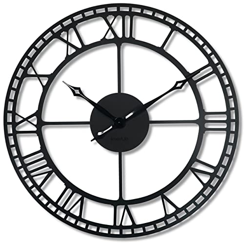 LW Collection väggklocka Alberto Svart 52 cm – väggklocka vardagsrum – tickar inte – modern – tyst – stor väggklocka – industriell – vintage – romerska siffror – väggklocka kök – sovrum