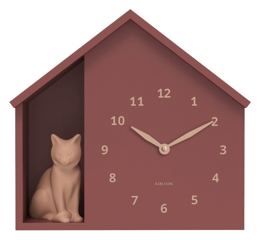 Karlsson väggklocka Sitting Cat burgundy red KA6099RD
