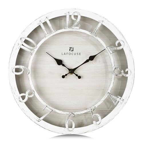 Lafocuse 30 cm höjda 3D-siffror vit väggklocka kök batteridriven, tyst bondgård nödställda rustika väggklockor för vardagsrumsinredning