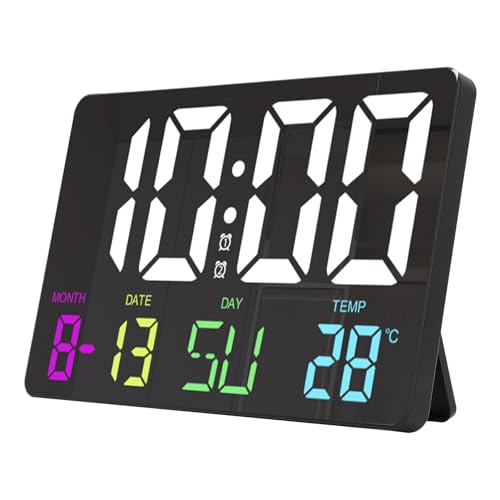 Fuloon digital väggklocka, LED-väggklocka med 13 tums stor skärm, med fjärrkontroll, timing och nedräkning, digital bordsklocka med datum, vecka, temperatur, för sovrum, vardagsrum