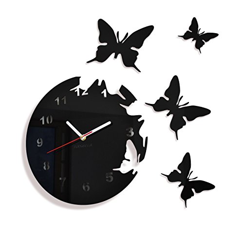 Stor modern väggklocka fjäril svart rund 30 cm, 3D gör-det-själv, vardagsrum, sovrum, barnrum