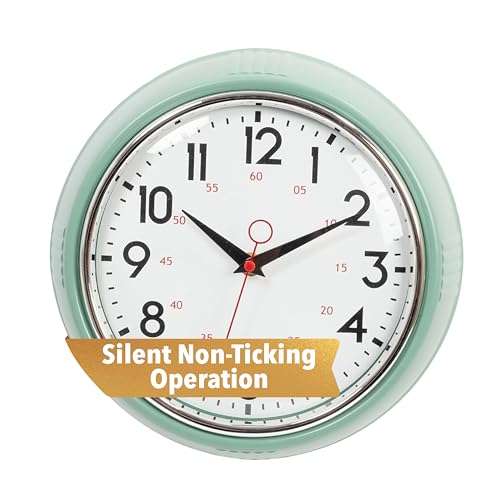 Kiera Grace retro väggklocka med krominfattning och konvex glaslins, 2,5 tum, 2,5 tum djup, grön