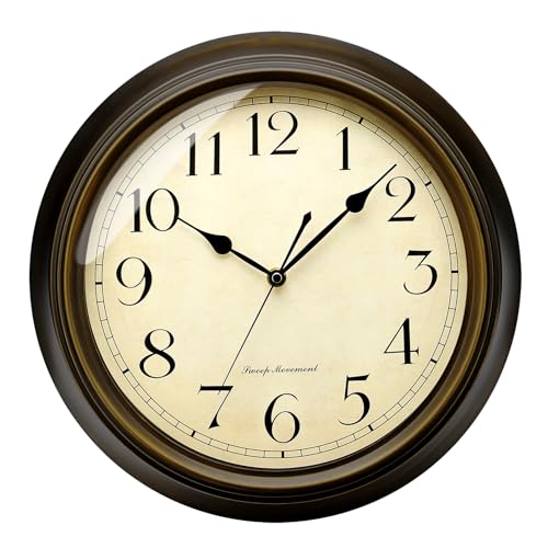 Plumeet väggklocka klassisk 25 cm tyst retro väggklocka utan tickande ljud för vardagsrum – sovrum – batteridriven (arabiska siffror)