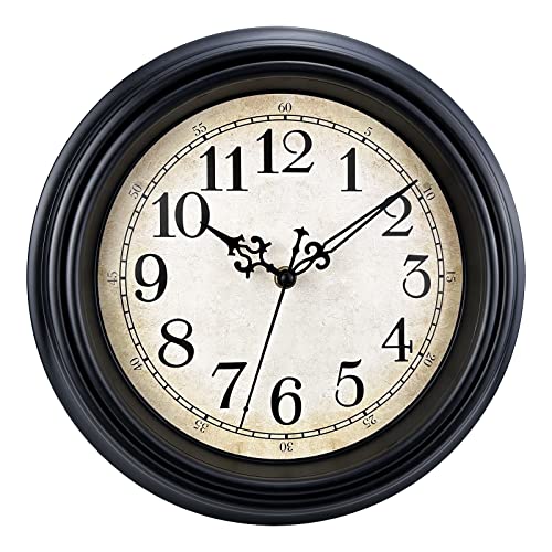 Plumeet retro väggklocka, 30 cm tickar inte klassiska tysta vintage väggklockor dekorativa kök vardagsrum sovrum - batteridrift, svart
