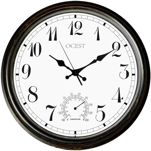 OCEST 40 cm trädgård utomhusklocka, termometer display 40 cm stor inomhus väggklocka retro tyst icke-tickande vattentät utomhus, batteridriven utomhusklocka för heminredning, uteplats, trädgård