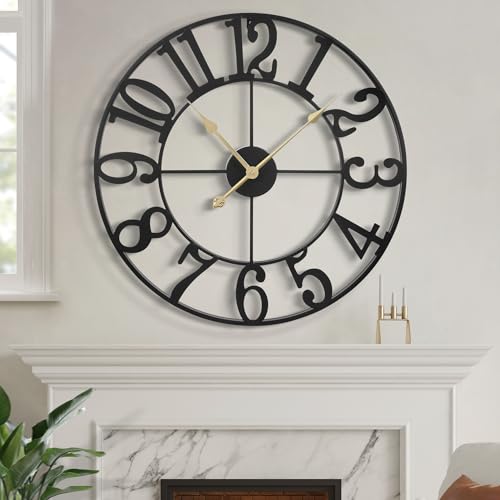LEIKE stor väggklocka – 45 cm retro bondgård tyst icke-tickande batteridriven inomhus utomhus överdimensionerade dekorativa svarta metallväggklockor för vardagsrum, matsal, kontorsdekor