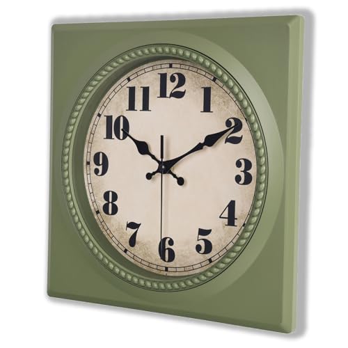 Alarllok Vintage väggklocka 1950-talsstil – retro 50-tals mitten av århundradet fyrkantiga väggklockor batteridrivna för kök vardagsrum heminredning – 30 cm, olivgrön