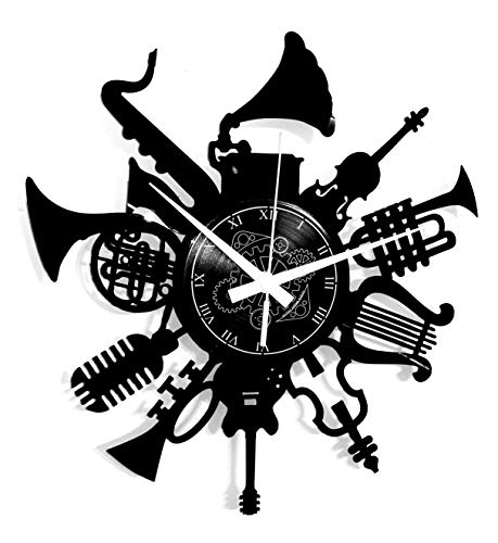 Vinyl väggklocka vintage handgjorda LP-skiva-design dekor gitarr noter musikinstrument jazz pop rock