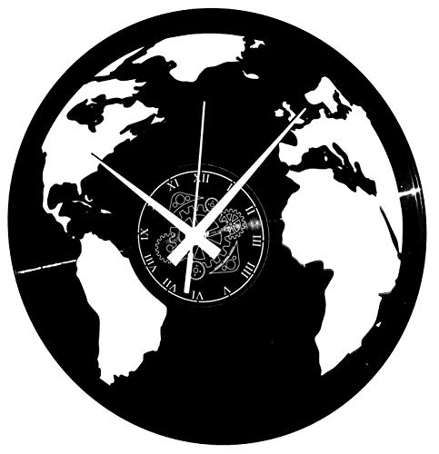 Vinyl väggklocka vintage handgjorda vinylskiva-design dekor resevärld värld resekontor