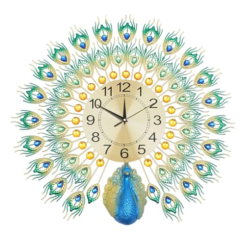 SHZICMY 21 x 21 cm färgglad vägghängande påfågel lyx väggklocka metallklocka väggklocka vintage metall väggklocka modern elegant konstdekoration lämplig för vardagsrum sovrum