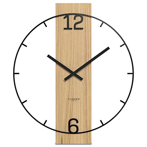 Cander Berlin Einar XXL vintage väggklocka tyst 50 cm metall trä ek fanér utan tickande stor modern svart vardagsrum kök