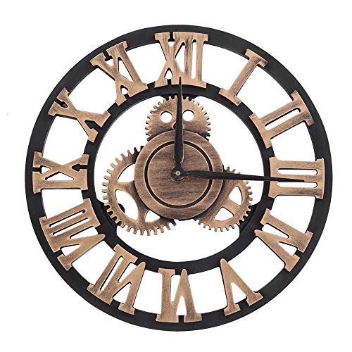 Ø 60 cm vintage väggklocka, retro romerska siffror klocka analog, europeisk industriell stil, för köksklocka, sovrum, vardagsrum, guld
