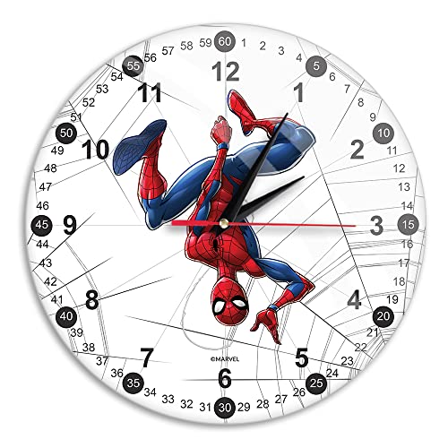 ERT GROUP Original och officiellt licensierad av Marvel Gloss väggklocka, mönster Spider Man 003 White, tyst, unik design, målade metall visare 12 "
