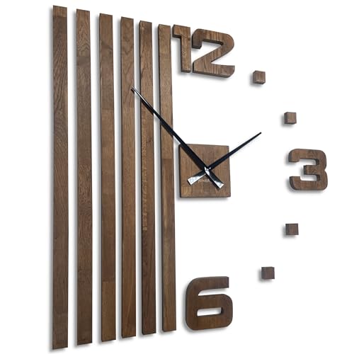 FLEXISTYLE 3D-Väggklocka Med Eklameller - Gör-Det-Själv-Montering, Stor Modern Design, Eko-Dekorationsklocka för Kontor, Vardagsrum Och Sovrum, XXL 100 cm, Brun Med Svarta Visare