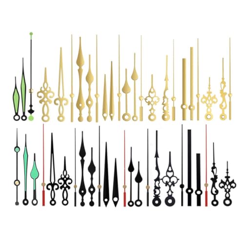 LEEQ Set med 16 stilar visare för väggklocka – aluminium klockvisare byggsats kvarts urverk långa visare gör-det-själv reservdelar för klockreparation (guld/svart)