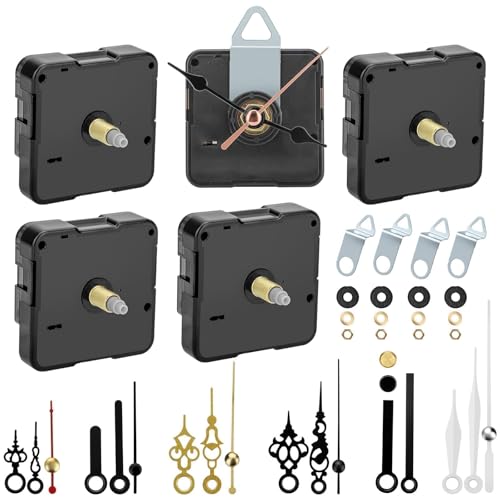 Munloo Urverk för väggklocka, 4 stycken urverk med visare, tyst kvartsrörelse, mekanism, reparationsverktyg med 6 olika par gör-det-själv urverkssatser, ersättning