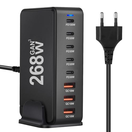 AXFEE USB C-laddare, 268 W 8 portar snabbladdningsblock, tre USB-A+5 x USB-C snabbladdare, väggkontakt med flera portar kompatibel med MacBook Pro/HP Laptop/iPad/iPhone/Huawei