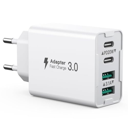 USB C-laddare, 40 W 4-port USB C-laddare block, snabbladdningsblock dubbel port PD+QC väggkontakt multiport typ C för Mobiltelefon 14/13/12/11/Pro Max/XS/XR/8/7/Galaxy S21/S22/S23/S24/surfplatta