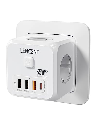 LENCENT USB Kontakt Cube 4000W, Snabbladdande Ladron 7-i-1 Uttag med PD35W, 3 AC Uttag, 3 USB och 1 PD35W, Cube Multipel Väggkontakt med Strömbrytare, USB Laddare för Familj, Kök och Kontor