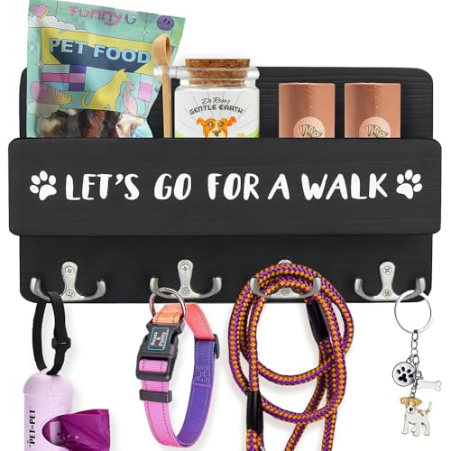 Niciksty Hundgarderob med hylla, hundkoppelhållare vägg för organisering av koppel och tillbehör, väggkrok för hundkoppel, hundkoppelhållare i trä för hall, entré, svart