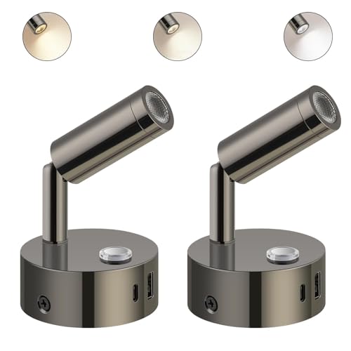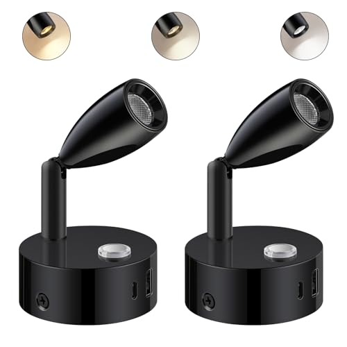 ERWEY 2 st 12 V läslampor för husbil, justerbar ljusstyrka och 3 färgtemperaturlägen, vägglampa med USB A+C-kontakter för bil, skåpbil och husvagn, svart