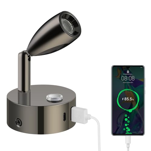 TWSOUL Dimbar RV-lä med USB-laddningsport,12 V LED-lä vägglampa, 3 W LED spot lä touch dimmerströmbrytare, 360° roterbar för campare husbil husvagn båt (2 stycken)