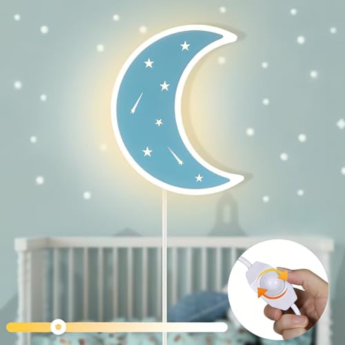 LED dimbar vägglampa med strömbrytare och kontakt barn nattlampa varm vit 3 000 K barnrum vägglampa pojkar flickor sovrum månlampa inomhus vägglampa