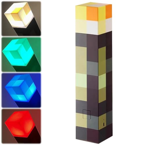 AVCXEC Väggficklampa nattlampa, hantverk ficklampa med 4 färger, LED MCERS nattlampa, 3D-lampa ficklampa vägglampa, USB uppladdningsbar sänglampa för cosplay leksak belysning barn gåvor