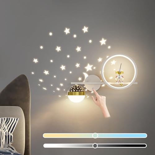 Barnrum vägglampa inomhus LED med touch strömbrytare dimbar sänglampa stjärnhimma astronaut nattlampa modern barn lä 30 W vit väggbelysning för babyrum vardagsrum hall