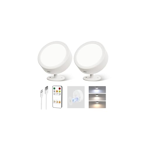 EZVALO Vägglampa inomhus med 5 500 mAh batteri, vägglampa trådlös med fjärrkontroll, 3 färglägen dimbar LED vägglampa batteri för vardagsrum, sovrum, barn, vit (2 stycken)