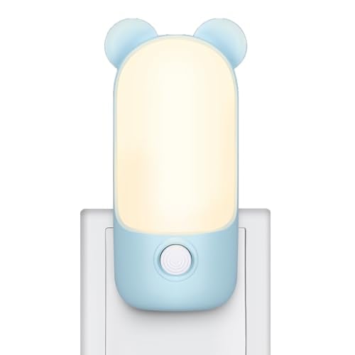 Alyvisun Baby Nattlampa Elkontakt, Söt Björn Nattlampor för Barn med 2 Lägen, LED Barnnattljus för Sovrumsinredning, Vägglampa för Trappor/Hall/Kök(Blå)