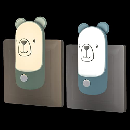 Nattlampa för barn med strömbrytare, för uttag, 2 stycken Björnljus för dekoration av barnrum, Energisparande LED, Belysning för omvårdnad av nyfödda, Söt liten vägglampa, Gåvor för pojkar