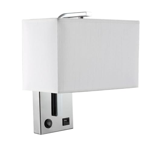 VoltShine 1 x E27 vägglampa med USB-port, krom och vit panel, mått 27 x 25 x 15 cm, inkluderar strömbrytare; perfekt för belysning och laddning av enheter.