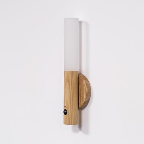 FIRST4MAGNETS MagLight magnetisk PIR-sensor vägglampa, trä trådlös USB-laddningsbar nattlampa för sovrum, kontor, studie, vardagsrum, hall - vitt vax