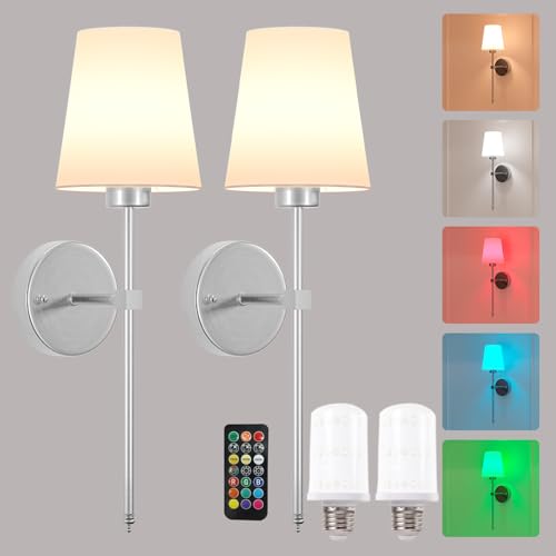 Sobrovo LED-batteridriven vägglampa, batteridriven vägglampa USB-uppladdningsbar RGB-dimbar, inomhus väggbelysning med fjärrkontroll för, sovrum, hall och trapphus, borstad nickel