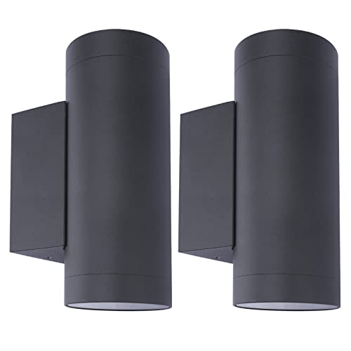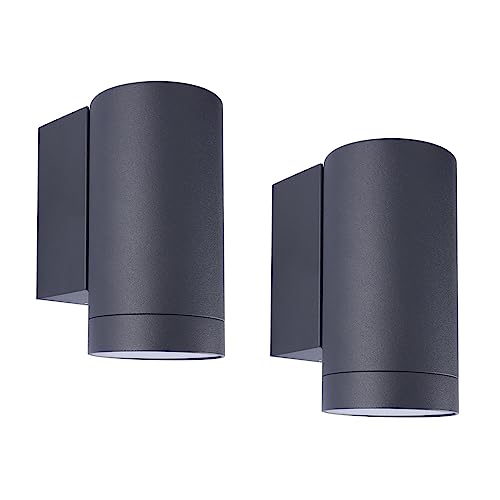 Klighten 2 st utomhusvägglampa IP65 upp och ner utomhus inomhus väggbelysning modern aluminium vägglampa för trädgård ingång korridor innergård, uttag GU10, glödlampa ingår inte, mörkgrå