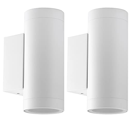 Klighten 2 st utomhusvägglampa IP65 upp och ner utanför väggbelysning modern aluminium vägglampa för trädgård ingång korridor innergård, uttag GU10, vit, glödlampa ingår ej