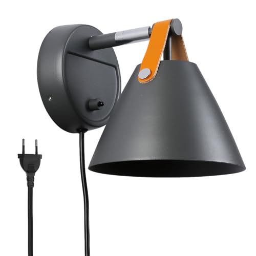 B·LED BARCELONA LED BarcelonaLED-vägglampa med kabel och strömbrytare, vitt nordiskt uttag, med läderarmband, GU10-uttag, för sovrum, säng, vardagsrum, nattduksbord