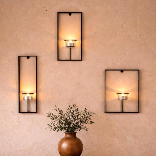 Vägg ljusstakar set om 3 metall svart värmeljus väggljushållare väggljusstake