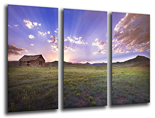 Väggmålning – landskapsoln på gräslandet, natur, 97 x 62 cm, trätryck – XXL format – Konsttryck, ref.26073