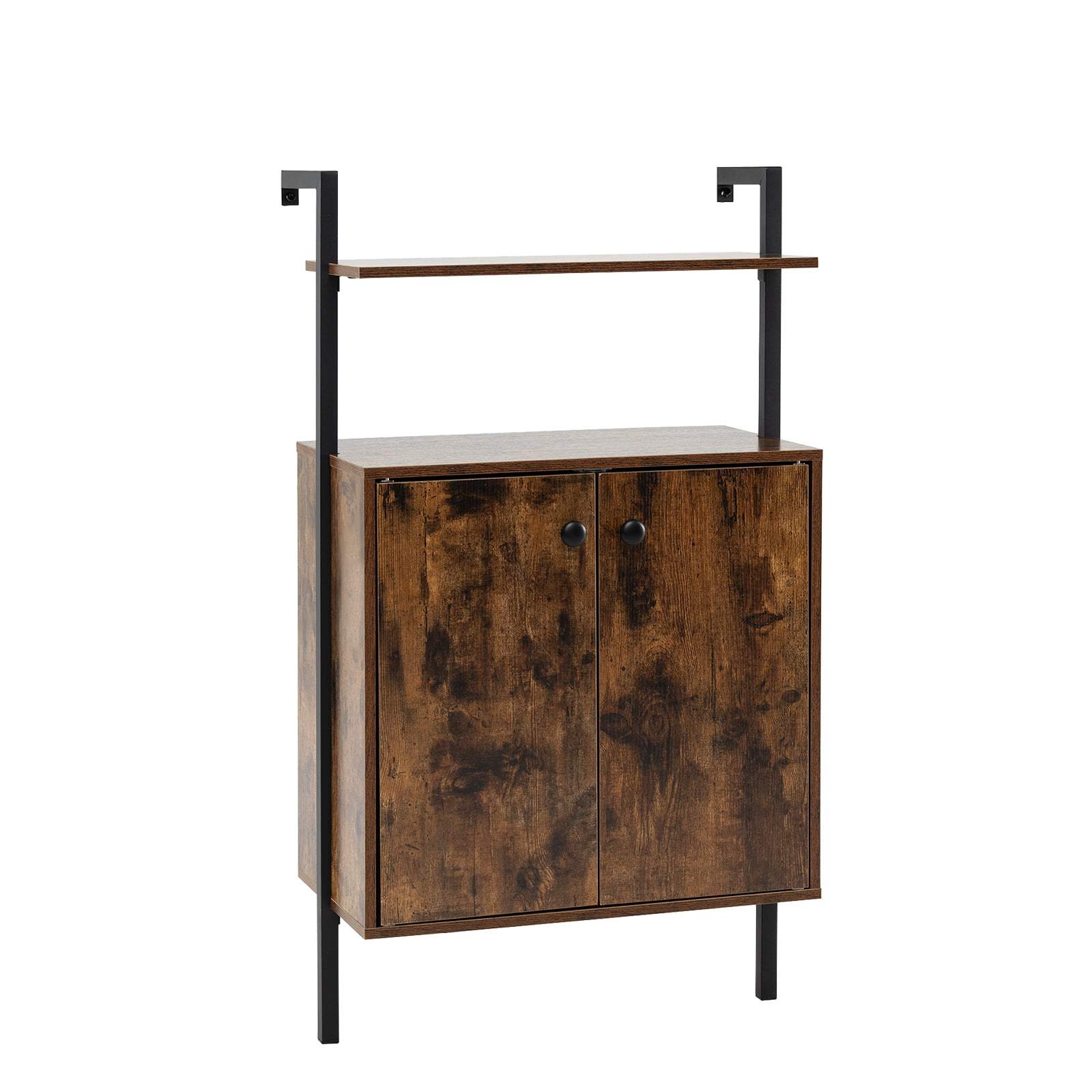 Väggmonterad bokhylla med 4 våningar och skåp – Brun