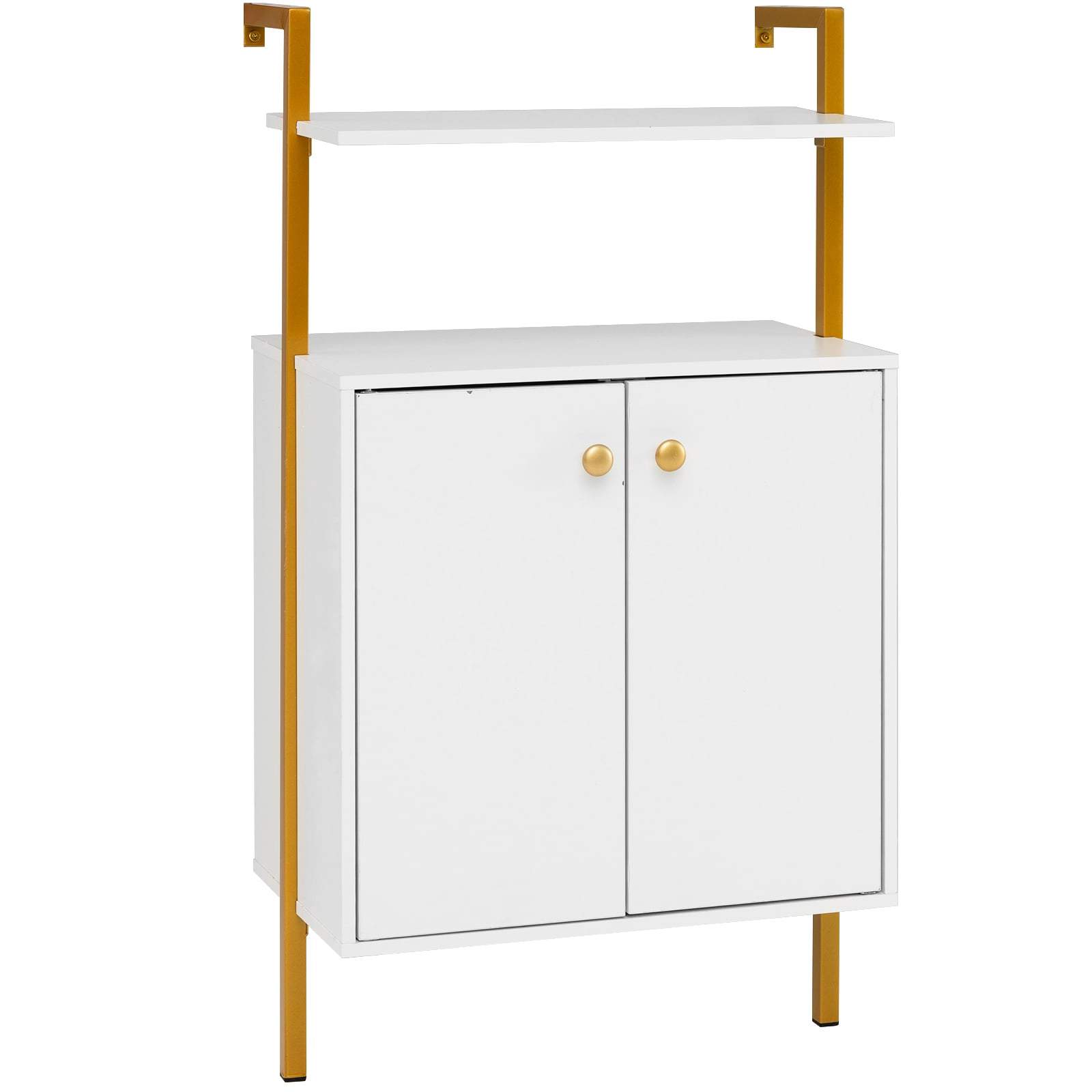 Huhote steghylla, väggbokhylla med 6 nivåer, bokhylla, väggmonterad, bokhylla, öppen hög bokhylla med metallram, industriell hylla för vardagsrum, kök, kontor, sovrum (vit/guld)