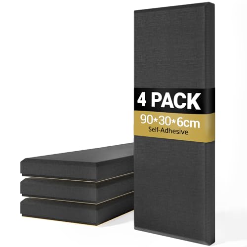 TONOR 4 st Stor Akustisk Panel, 90 x 30 x 6 cm 3D Glasfiber Ljudskyddande Panel med Full Självhäftande, Dekorativ Ekoabsorberande Väggpanel, för Studio, Vardagsrum, Hem, Kontor, Svart