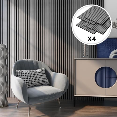 NEU.Trä akustisk väggpanel Vang i set om 4, akustiska plattor för hall, vardagsrum, inomhusväggdekoration i träutseende, väggbeklädnad, ek, grå