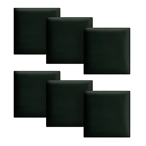 Väggpanel 30 x 30 cm, 6 stycken 3D-vadderade mörkgrön – för enkel montering, av velourtyg, med mjuk fyllning – huvudgavel för sovrum, dekoration vardagsrum, dekoration, väggdekoration