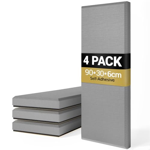 TONOR 4 st Stor Akustisk Panel, 90 x 30 x 6 cm 3D Glasfiber Ljudskyddande Panel med Full Självhäftande, Dekorativ Ekoabsorberande Väggpanel, för Studio, Vardagsrum, Hem, Kontor, Grå