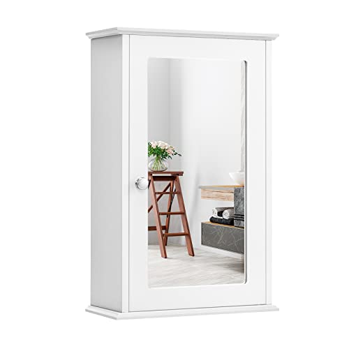 Costway Spegelskåp badrum, badrumsskåp med spegel, badrumsskåp med höjdjusterbar hylla, badrumsspegel, väggskåp badrumsmöbler, badrumsspegelskåp 58,5 x 56,5 x 13,5 cm (vitt)
