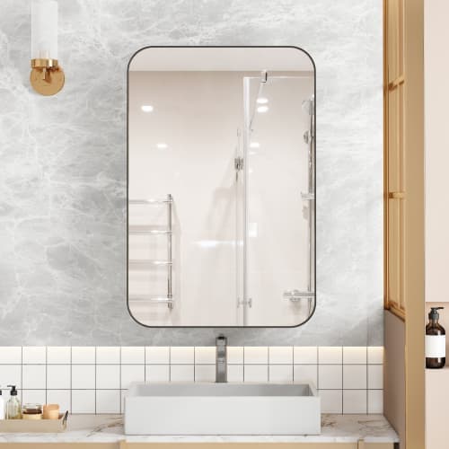 VEVOR Medicinskåp, 50 x 76 cm, medicinskåp för badrum med spegel, aluminiumram badrum väggskåp, 4-lagers justerbara hyllor, infälld och väggmonterad installation