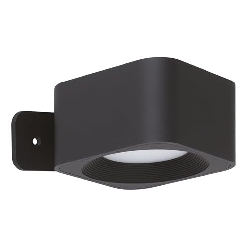 EGLO LED Vägglampa Inside Talamello, Rektangulär Vägglampa Med Indirekt Belysning, Väggspotlight För Hall Och Vardagsrum, Metall I Svart, Varmvit, Ø 15 Cm
